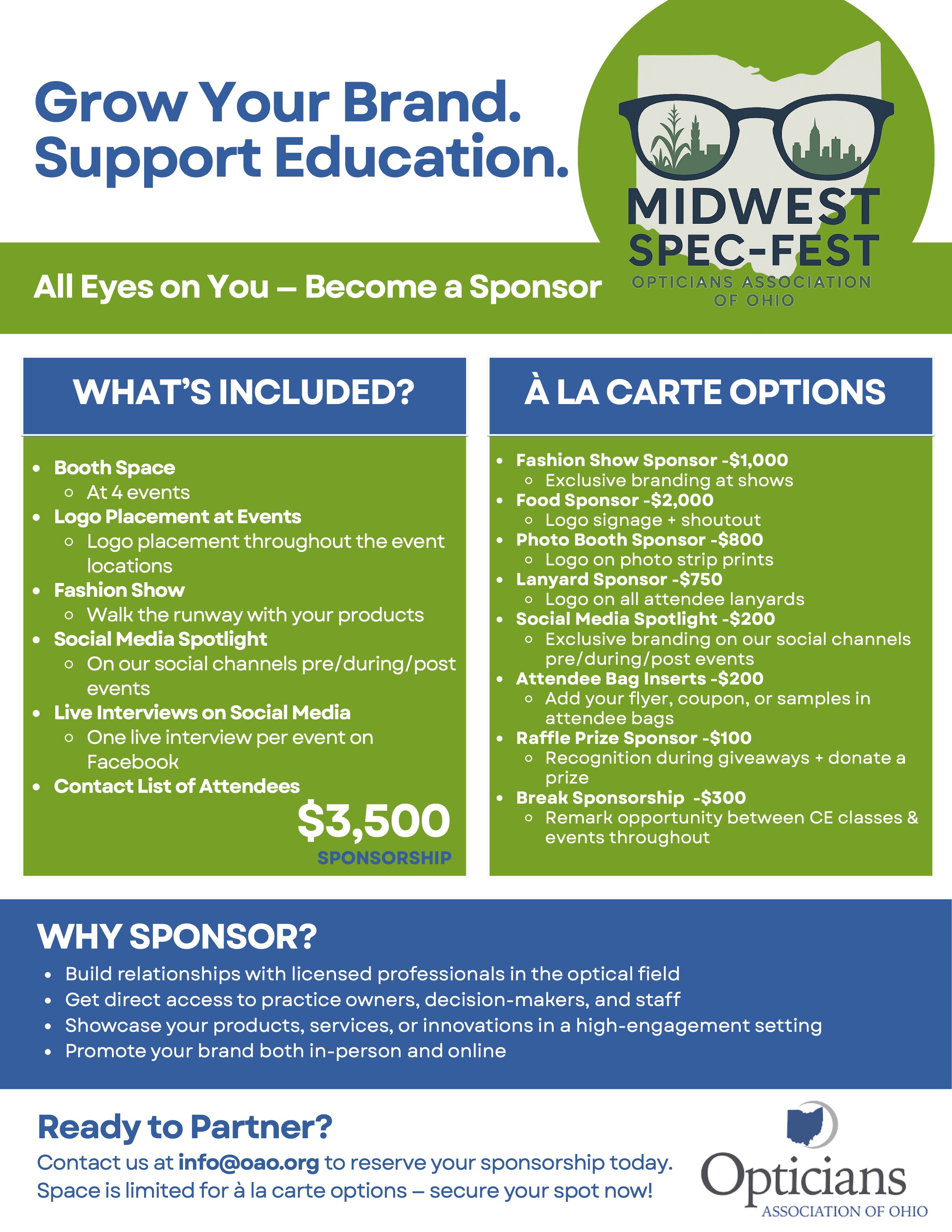 Hosted by the Opticians Association of Ohio, Midwest Spec-Fest is THE premier two-day event bringing together opticians, optometrists, ophthalmologists, optical techs, managers, and staff from across the region. It’s your one-stop destination to connect, learn, grow, and celebrate everything optics.